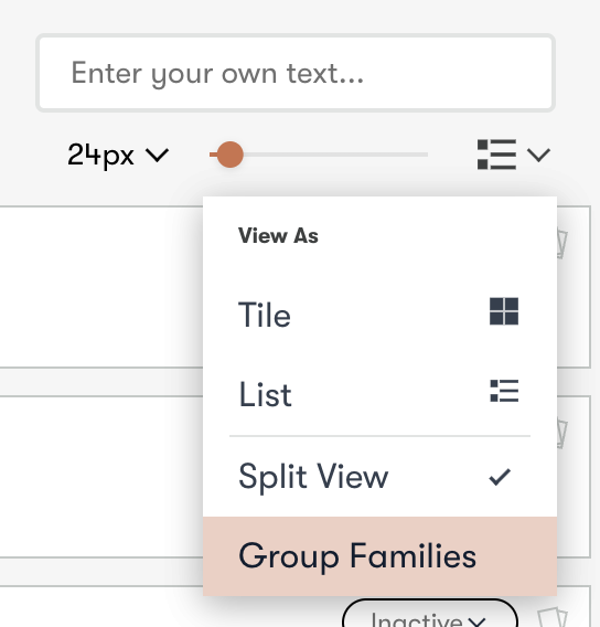 Sie können Ihre Schriften in Ihrer Schriftenliste nach der Familie gruppieren, zu der sie gehören.