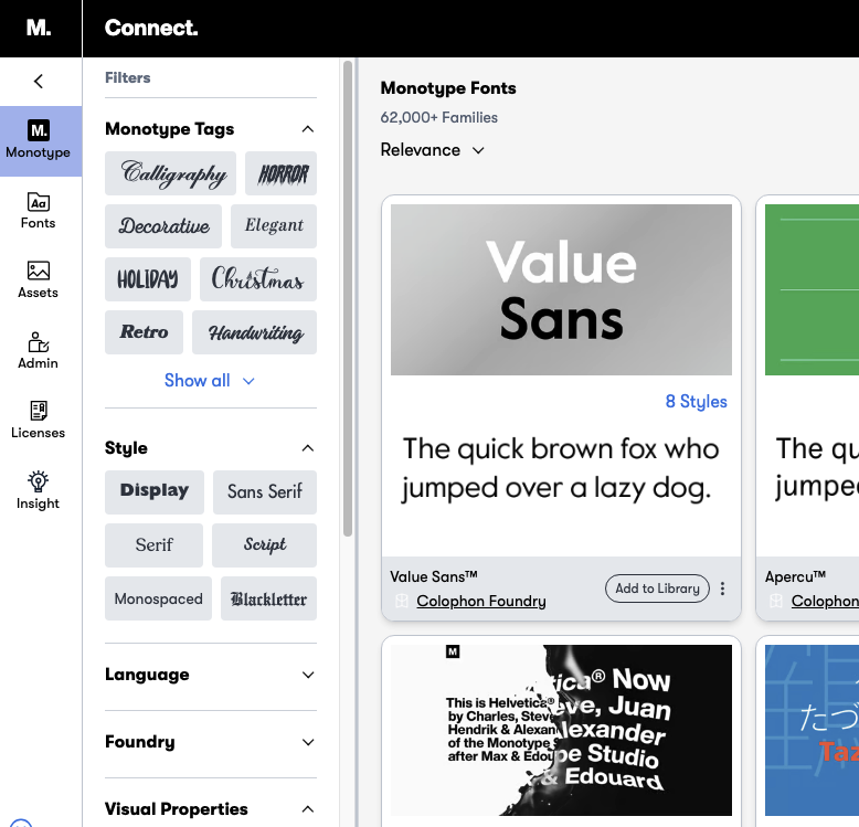 La nouvelle application Monotype Connect vous permet de profiter d’une interface plus agile, moderne et intuitive que jamais :